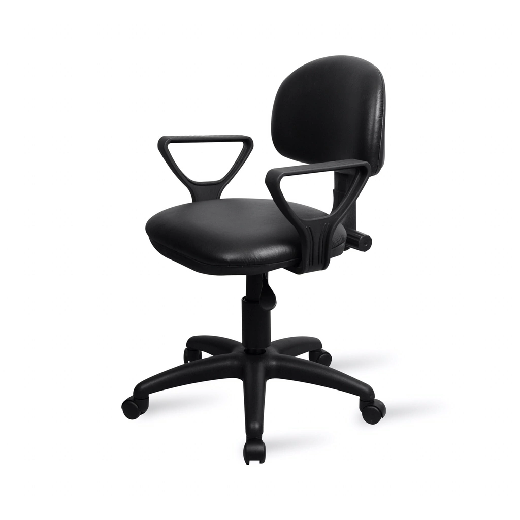 Asiento y respaldo tapizado con goma espuma de alta densidad. Con regulación a gas y contacto permanente. Con apoyabrazos. Modelo tapizado en ecocuero negro.